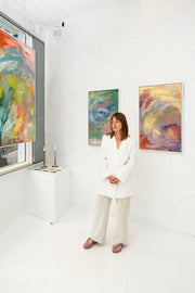 Fastword to today, and one of Hewitt’s paintings hangs in our Armadale residency. So as we looked at our Spring Summer ‘25 collection, Florescence – inspired by Ogawa Kazumasa’s, Some Japanese Flowers, and the process of developing, we turned to Jordy to tune into her process, her preferred medium and artists who have inspired her.