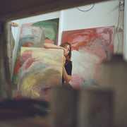 I mix the palette first so I have lots of options in front of me and once I start I don’t have to stop too much to mix more colours. I work in a space where I can hear others and their music so I have to tune that out. I don’t listen to podcasts so that I’m not in a thinking, brain space. At the moment - Christine and the Queens, SZA, Bullion, Suitnop, Breathe, Jamie XX, Mac Miller, Doechii.